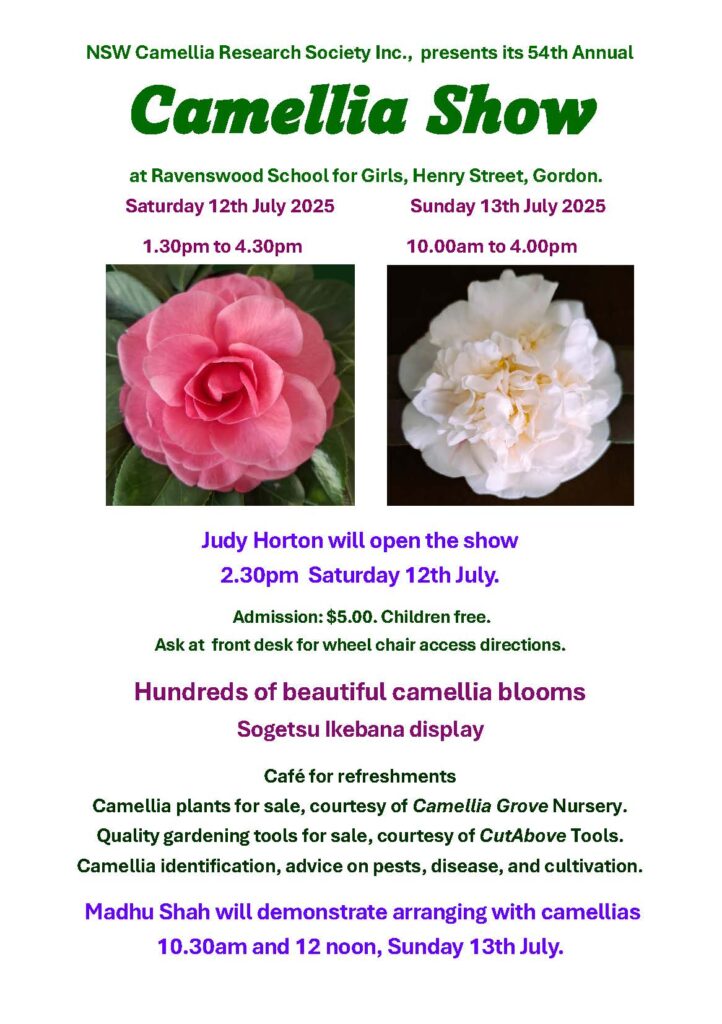 2024 Annual Camellia Show Annual Show / By Tony Cavenagh 2024 Annual Camellia Show – update The NSW Camellia Research Society will present its 53rd Annual Camellia Show on 13 -14 July at Ravenswood School…